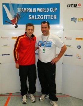 Weltelite des Trampolinsports trifft sich zum letzten World-Cup in dieser Serie in Salzgitter. Die laufende Serie wird am 8. & 9.10.2010 in Salzgitter beendet. Aus Hamburg hat Daniel Schmidt seine Chance bekommen, um weitere internationale Erfahrung zu sammeln. Sowohl im EINZEL aber auch im SYNCHRON mit Dennis Luxon wird Daniel seine Übungen zeigen. Cheftrainer "Mitch" möchte sich einen letzten Überblick der Aktiven machen, bevor nach dem World-Cup die Aktiven für die Weltmeisterschaft benannt werden. Dieser World-Cup ist somit die letzte Chance für die deutschen Athleten zur WM-Qualifikation. Das Deutsche Team hat jetzt schon 2 Trainingseinheiten abgeschlossen und möchte vor "heimischen Publikum" eine gute Note abgeben. Wir werden weiter laufend berichten......